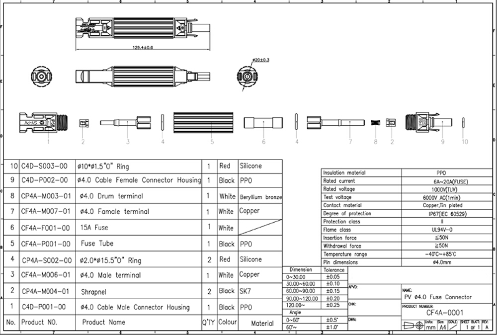 Conector MC4 cu siguranta fuzibila 10x38mm, 10A, 1000V DC pentru sisteme solare fotovoltaice IP67 Longroad