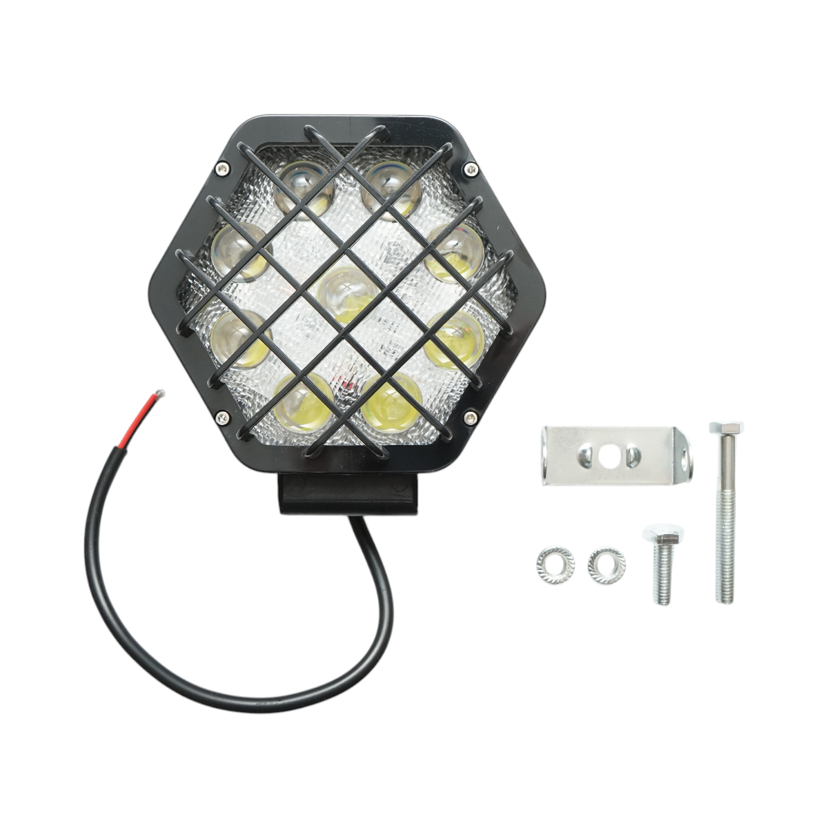 Lampa proiector hexagonal cu grilaj metalic negru, 9 LED-uri, unghi de radiere 30, DC 10-80V 27W Breckner Germany