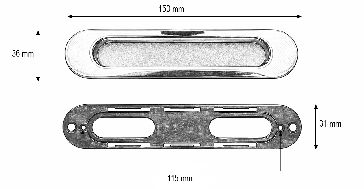 Maner usa glisanta cromat incastrat tip scoica 36x150mm