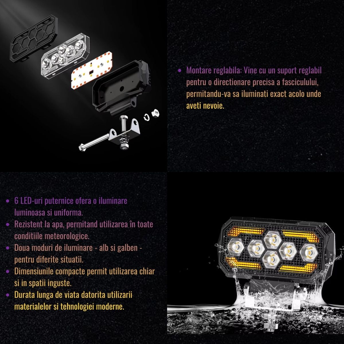 | Tip lumina | 6 LED-uri tip spot (alb) + DRL (galben) |