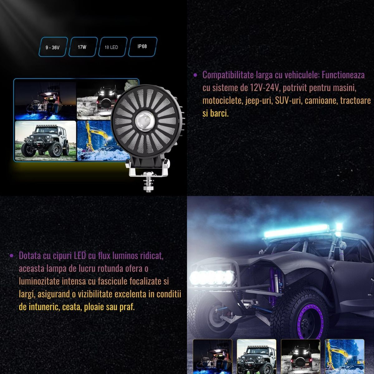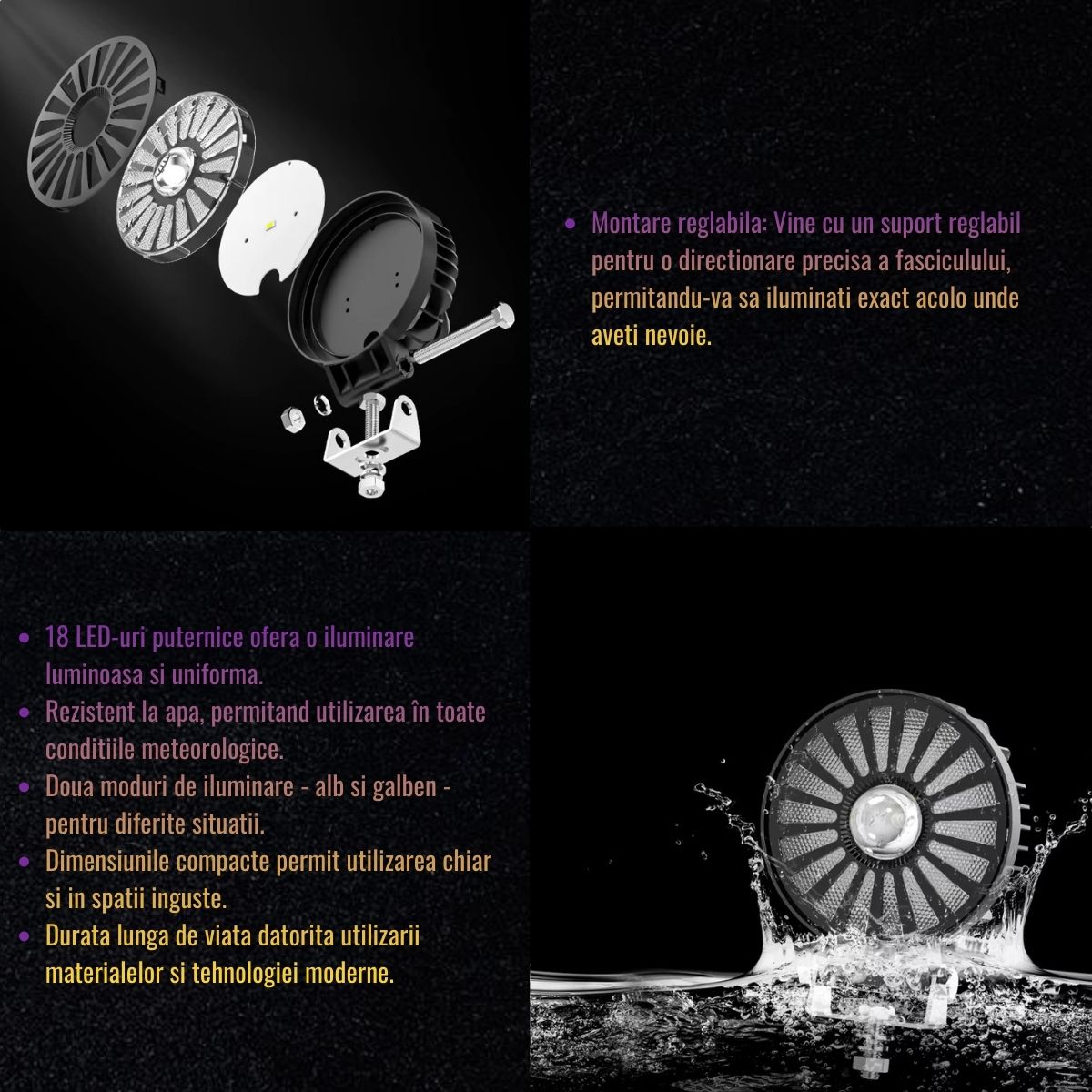 | Tip lumina | 18 LED-uri tip spot (alb-rosu) + DRL (galben) |